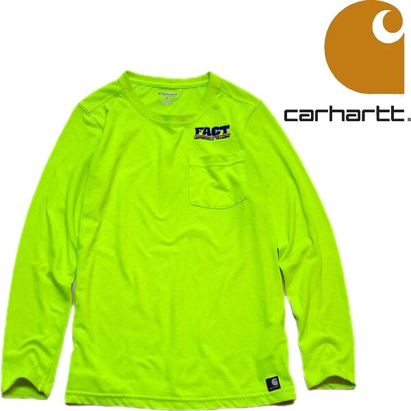 1点物◆蛍光カーハート長袖ポケット付きロンTシャツ古着メンズレディースOKアメカジ90sストリート/スポーツUSワーク中古ブランド371343