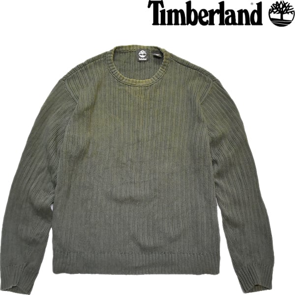 1点物◆ティンバーランド無地リブ編みニットセーター古着メンズ2XLレディースOKアメカジブランド90sストリート/スポーツ中古オリーブ371410