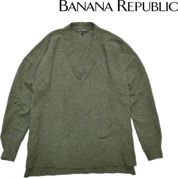 1点物◆GAP系バナリパBRオリーブ無地Vネックニットセーター古着メンズL/XLレディースOKアメカジブランド90sストリート/スポーツ中古371405