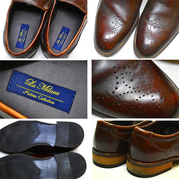 1点物◆La Milanoスリッポン茶革靴ブローグレザーシューズ古着メンズ28レディースOKアメカジ90sストリート/スニーカーUSブランド中古371442
