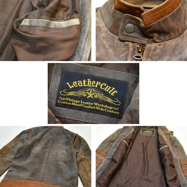 1点物◆Leather Cult茶ヌバックレザージャケット革ジャン古着メンズレディースOKアメカジ90sストリート/スポーツ/ブランドブルゾン371432