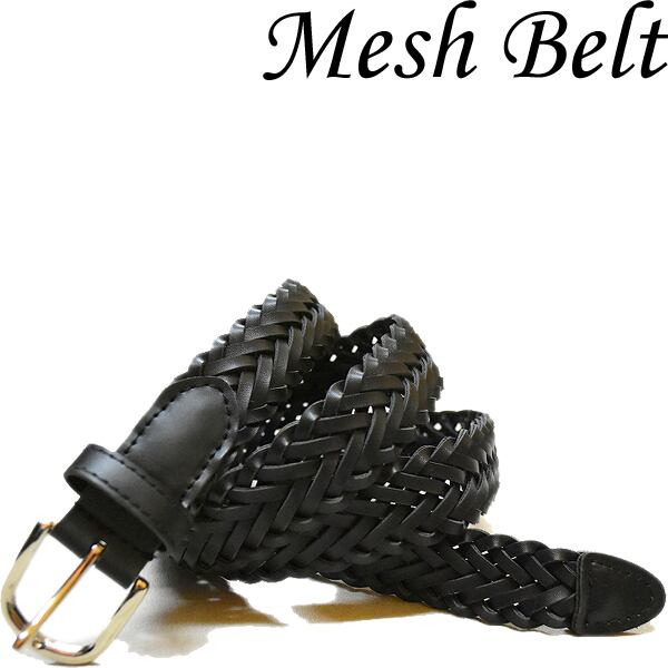 1点物◆ビッグサイズ黒バックル付きレザーメッシュベルト古着メンズ3XLレディースOKアメカジブランド90sストリート/スポーツMix本革371518