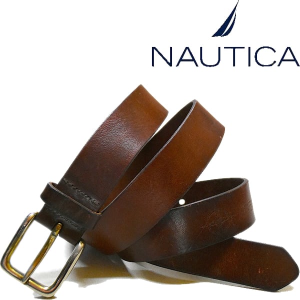 1点物◆ノーティカNAUTICA茶バックル付きレザーベルト古着メンズ2XLレディースOKアメカジブランド90sストリート/スポーツMix本革371517