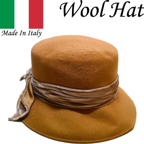1点物◆イタリア製キャメル色ウール100%バケットハット帽子/古着メンズレディースOKアメカジ90sストリート/スポーツMixソフト帽/中古371606