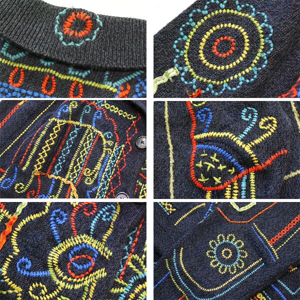 1点物◆CHICO'S刺繍柄カーディガン襟付ニットセーター古着メンズレディースOKアメカジ90sストリート/スポーツ/ブランド派手カウチン371621