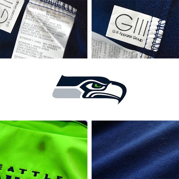 1点物◆NFLシアトルシーホークス紺ナイロンフリースジャケット古着メンズXXLレディースOKアメカジ90sストリート短丈ブルソンアウター371654