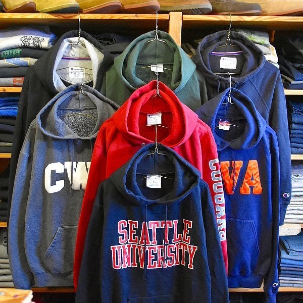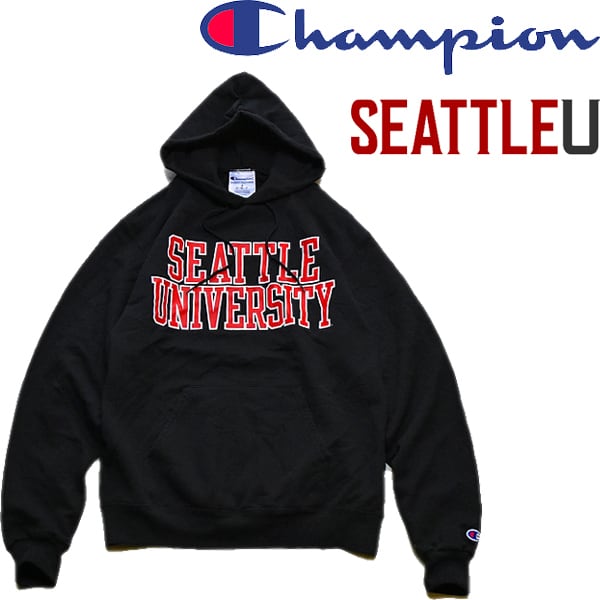 1点物◆SEATTLEシアトル大学チャンピオン黒スウェットパーカー古着メンズMLレディースOKアメカジ90sストリート/スポーツトレーナー371678