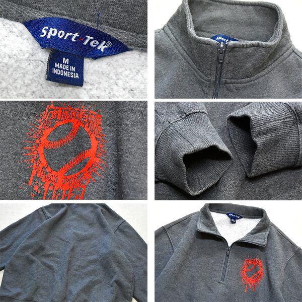1点物◆グレーSport-Tekハーフジップスウェット古着メンズMLレディースOKアメカジ90sストリート中古ブランド/プルオーバートレーナー371675