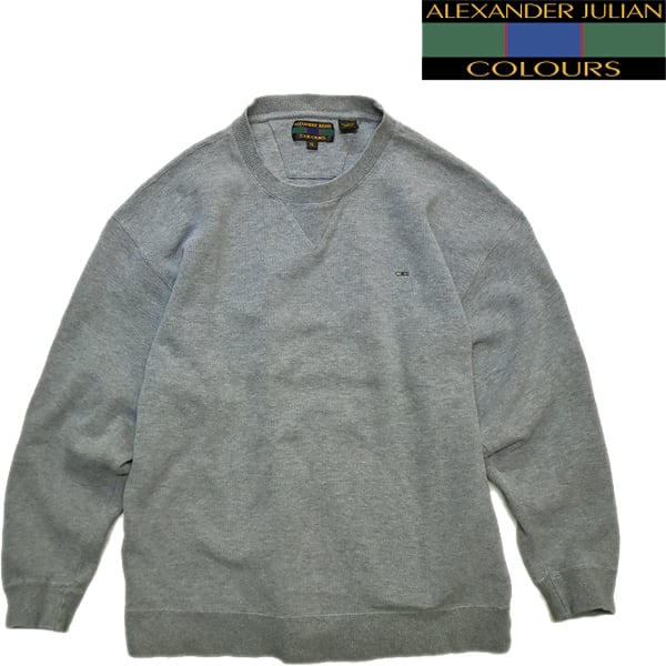 1点物◆アレキサンダージュリアンAJグレー前Vコットンニットセーター古着メンズXLレディースOKアメカジ90sストリート/スポーツ中古371721