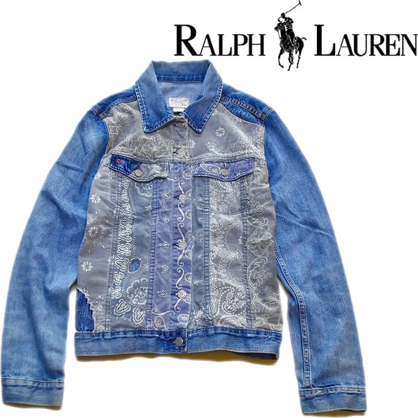 1点物◆ラルフローレンPOLOバンダナ加工ジージャンRLデニムジャケット古着メンズレディースOKアメカジ90sストリートGジャン中古XL371748