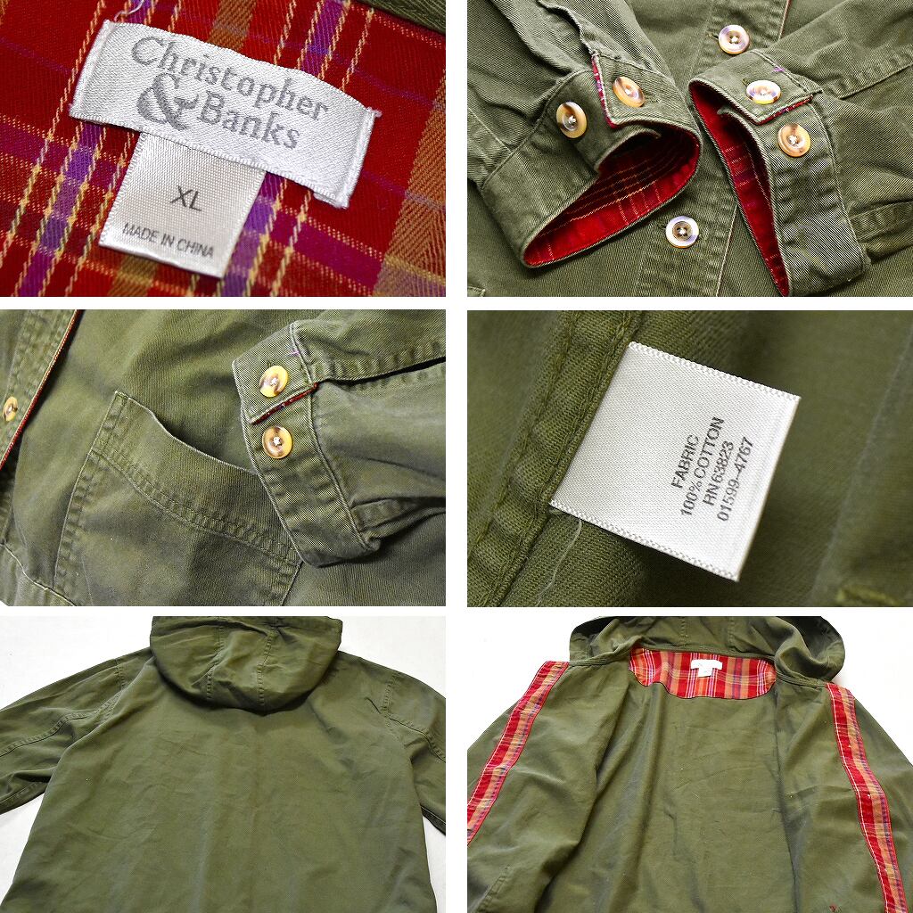 1点物◆USAブランドC&B薄手フード付きミリタリージャケット古着レディース2XLメンズOKアメカジ90sストリート/スポーツ中古オリーブ371768