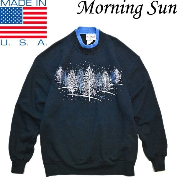 1点物◆USA製ビンテージ90s二重襟プリントスウェット古着メンズXLレディースOKアメカジ90sストリート/スポーツ/アメリカ製トレーナー371872