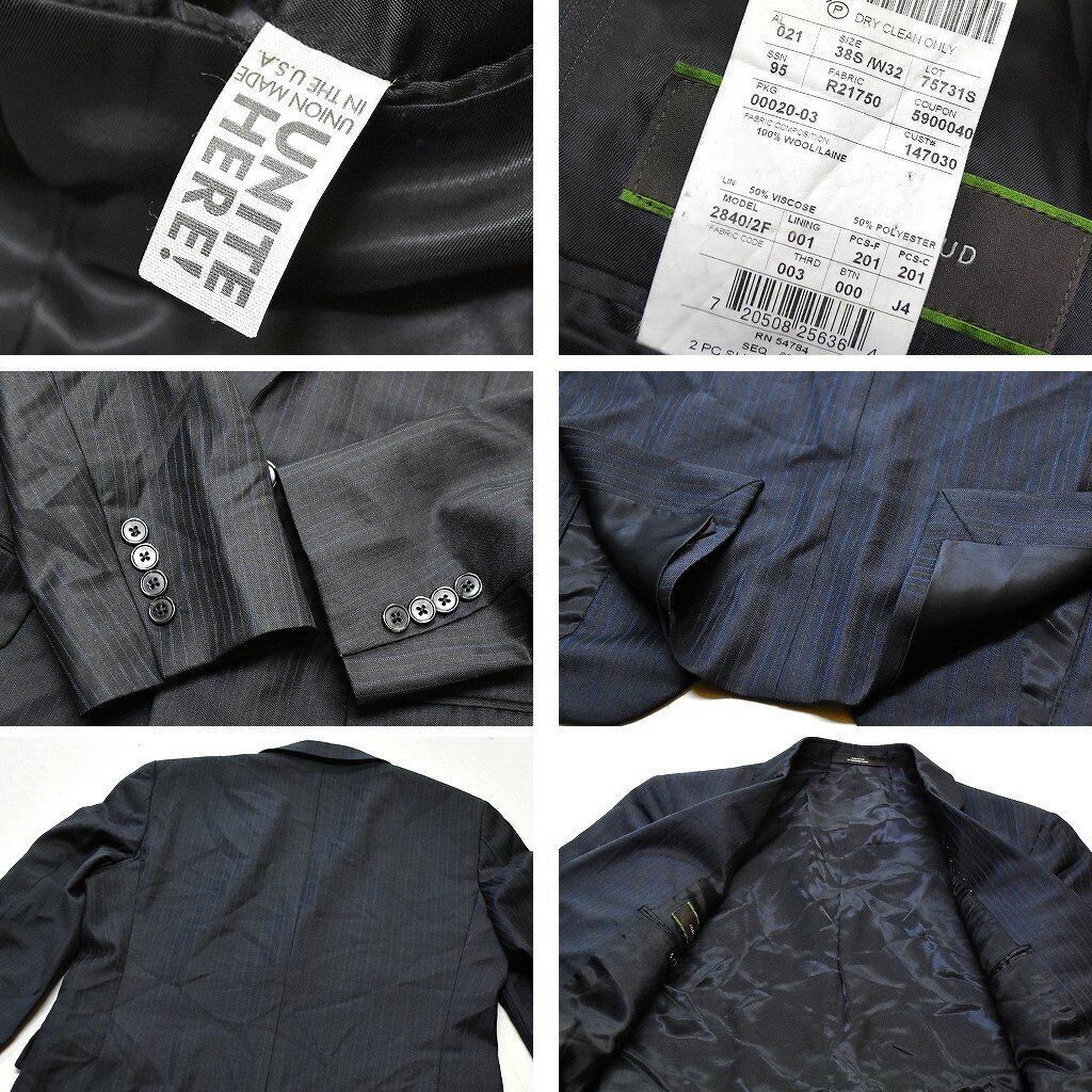 1点物◆USA製JAストライプ柄テーラードジャケット古着メンズMLレディースOKアメカジ90sストリート/ブレザー/ブランドスーツ/グレー371861
