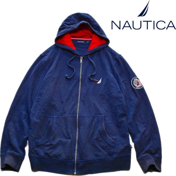 1点物◆ノーティカ紺ジップアップスウェットパーカー古着メンズL/XLレディースOKアメカジ90sストリート/スポーツブランド/フルジップ371896