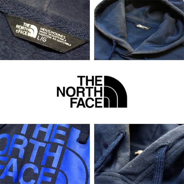1点物◆ノースフェイス色褪せ紺プリントスウェットパーカー古着メンズXLレディースOKアウトドア90sストリート/スポーツ/トレーナー山371976