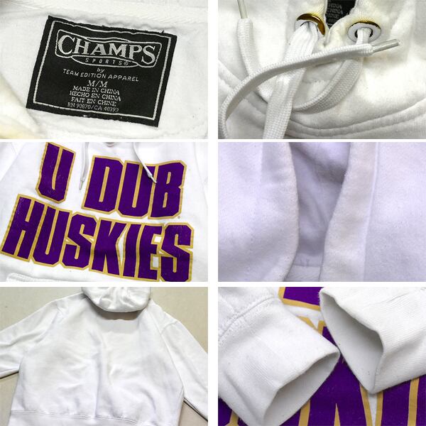 1点物◆ワシントン大学W白紫Champsスウェットパーカー古着メンズMLレディースOKアメカジ90sストリート/スポーツトレーナー部活フード371997