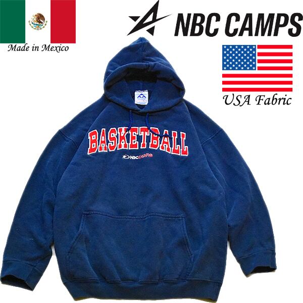 1点物◆US素材メキシコ製NBC紺スウェットパーカー古着メンズMLレディースOKアメカジ90sストリート/スポーツトレーナー球技バスケ中古371993