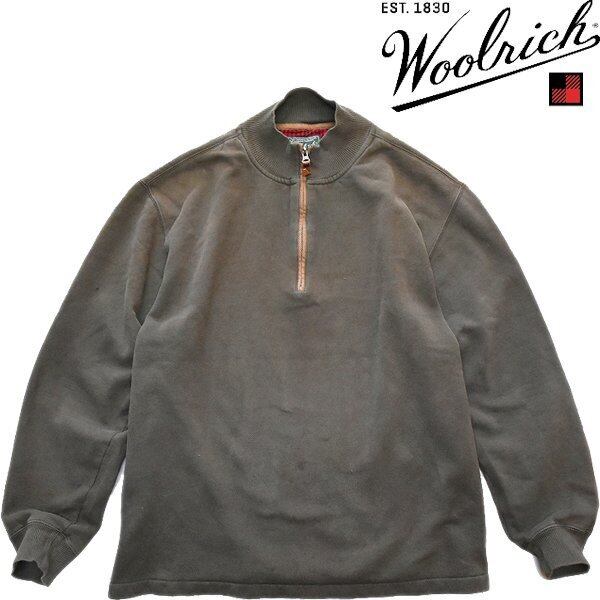 1点物◆ウールリッチ肘当て無地オリーブ色ハーフジップスウェット古着メンズレディースOKアメカジ90sストリート/トレーナー/ブランド371933