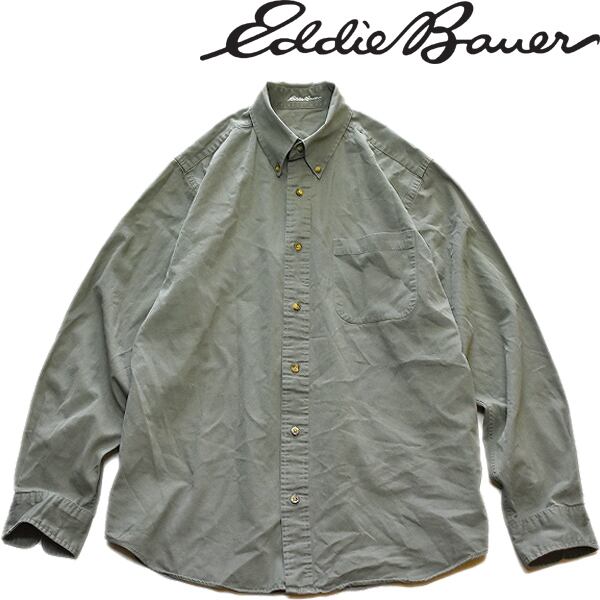 1点物◆エディーバウアー緑EB長袖ボタンダウンシャツ古着メンズMLレディースOKアメカジブランド90sストリートスポーツ中古ブランド372086
