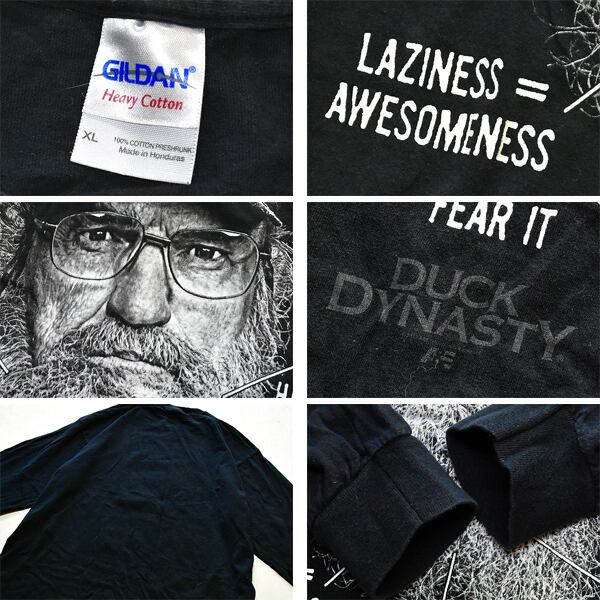 1点物◆Duck Dynastyフォトプリント長袖ロンTシャツ古着メンズXLレディースOKアメカジ90sストリート/スポーツ中古ブランド黒BEARD髭372134