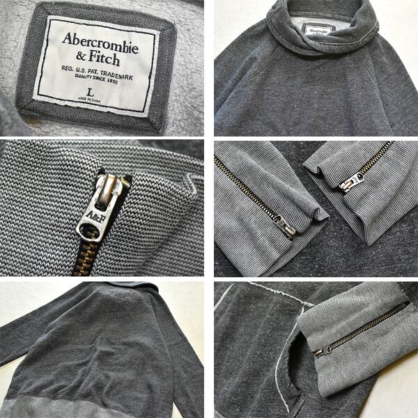 1点物◆アバクロA&Fツートン無地グレースウェット古着メンズレディースOKアメカジ90sストリート/スポーツブランドトレーナー中古L灰372151