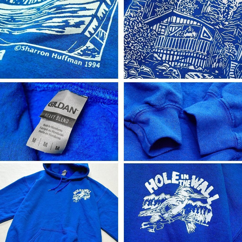 1点物◆ホールインザウォール企業バックプリント水色スウェットパーカー古着メンズMLレディースOKアメカジ90sストリート/トレーナー372102