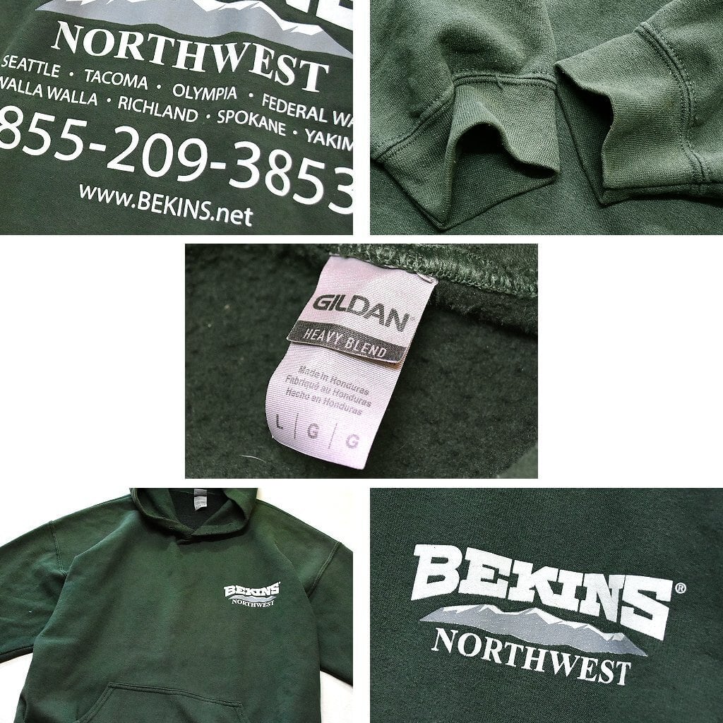 1点物◆BEKINS企業バックプリント深緑スウェットパーカー古着メンズL/XLレディースOKアメカジ90sストリート/スポーツ/トレーナー中古372101