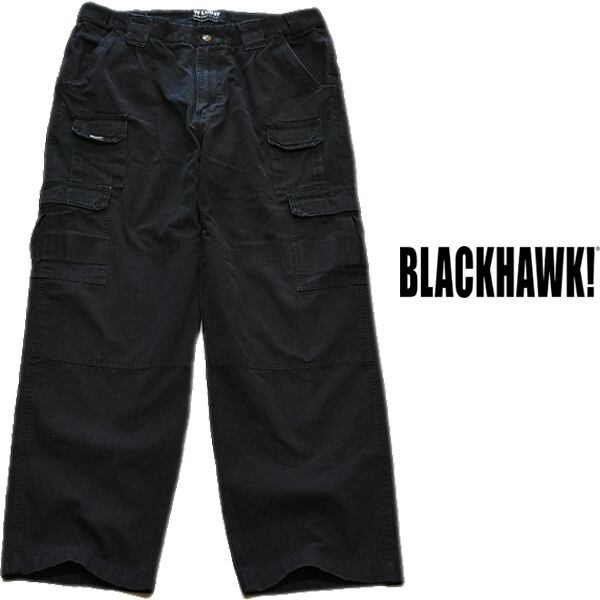 1点物◆BLACKHAKW!黒ミリタリーカーゴパンツ古着メンズ38レディースOKアメカジ90sストリートブランド/ワイドチノパン警察ポリス制服372171