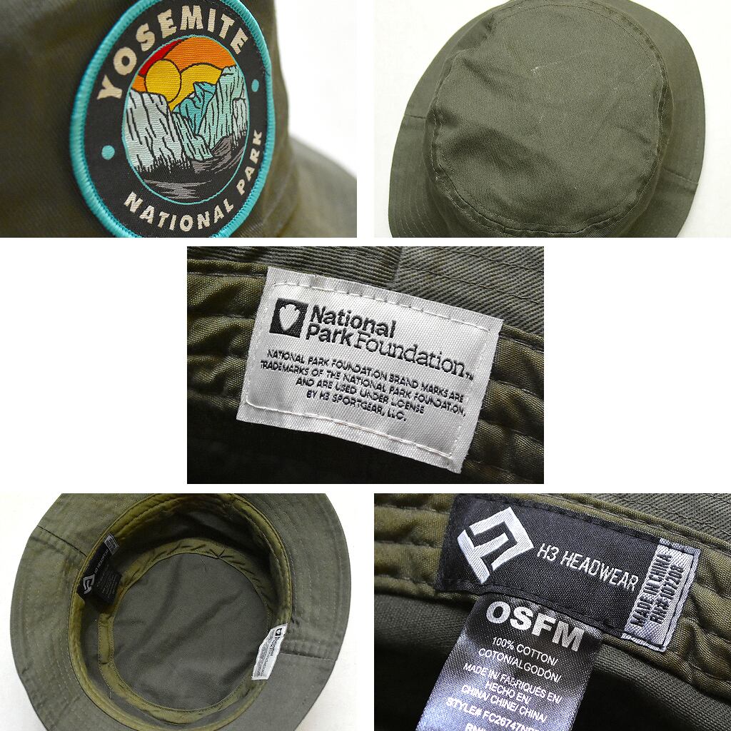 1点物◆ヨセミテ国立公園オリーブ色ロゴ刺繍バケットハット帽子/古着メンズレディースOKアメカジ90sストリート/スポーツ/クロッシェ372174