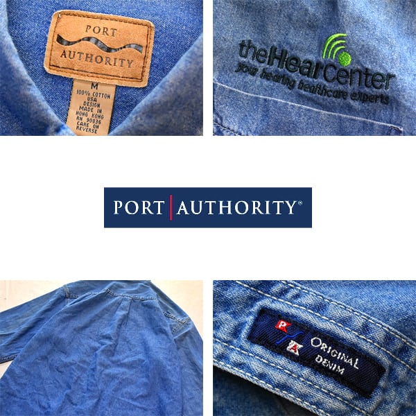 1点物◆PORT企業ロゴ長袖デニムシャツ古着メンズMLレディースOKアメカジブランド90sストリート/スポーツ中古ポートブランド372208