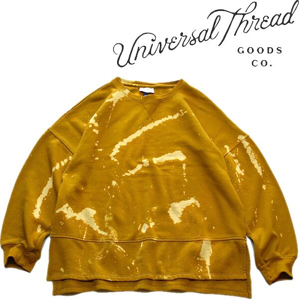 1点物◆芸術的ブリーチ雰囲気系カラシ黄土色スウェット古着メンズレディースOKアメカジ/ストリート中古タイダイアート茶トレーナー372298