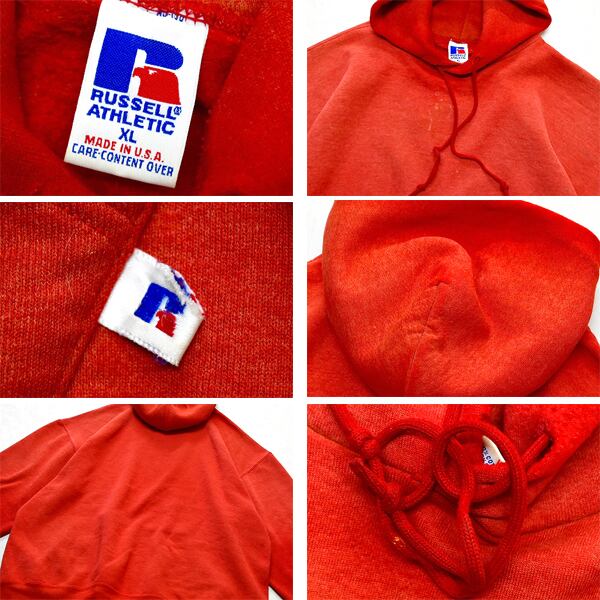 1点物◆USA製90sペンキアート雰囲気系ラッセル赤スウェットパーカー古着メンズXLレディースOKアメカジ/ストリート中古ビッグサイズ372291