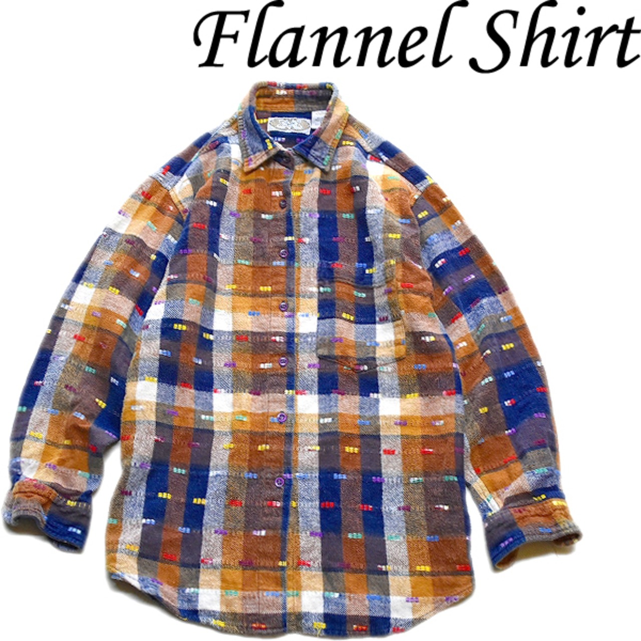 1点物◆柄物ヘビーネルシャツ長袖チェックシャツ古着メンズLレディースOKアメカジ90sストリート/スポーツ/アメリカンブランド厚手/茶372322