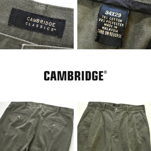 1点物◆キャンブリッジ緑2タックワイドチノパン古着メンズ34レディースOK90sストリート/スポーツ中古オリーブ深緑スラックスブランド372397