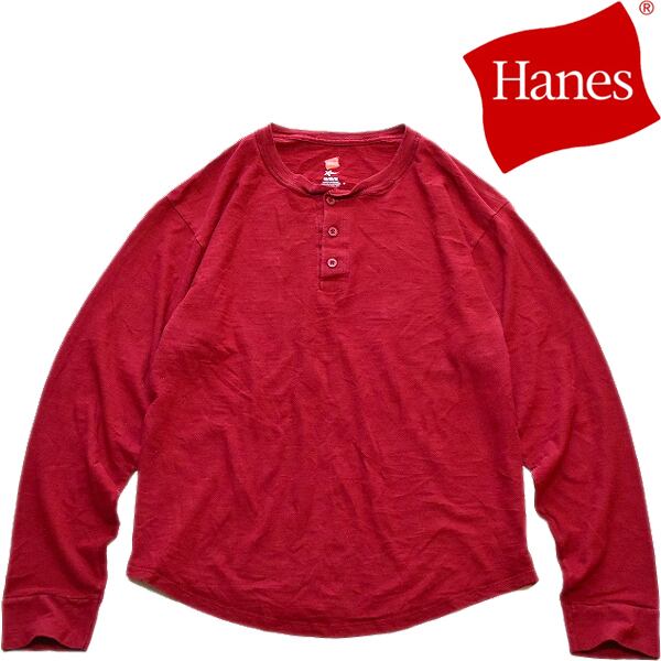 1点物◆ヘインズHANESヘンリーネック長袖ロンTシャツ古着メンズMLレディースOKアメカジブランド90sストリートMixスポーツ中古エンジ372408
