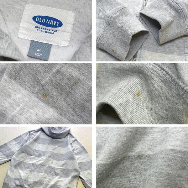 1点物◆オールドネイビーONボーダー柄ジップアップパーカー古着メンズMLレディースOKアメカジ90sストリート/スポーツ灰色トレーナー372416