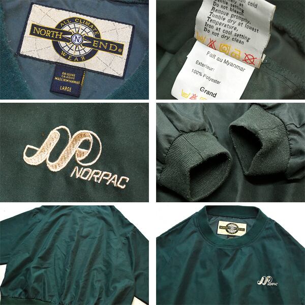 1点物◆NORTHEND深緑プルオーバーナイロンジャケット古着メンズL/XLレディースOKアメカジ90sストリートスポーツブランドスタジャン372418
