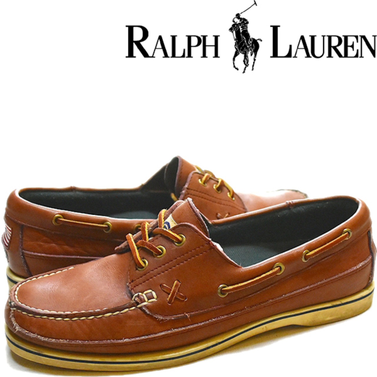 1点物◆ラルフローレン90s革靴デッキシューズ茶レザーシューズ古着メンズ28.5レディースOKアメカジストリート92ローファースニーカー372430