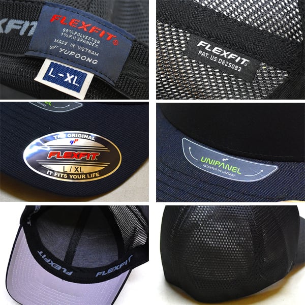 1点物◆フレックスフィット黒メッシュキャップ帽子トラッカーキャップ古着メンズレディースOKアメカジ90sストリートUSブランド企業372458