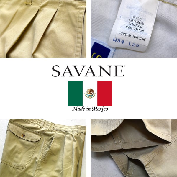 1点物◆メキシコ製SAVANE2タック入りチノパン古着メンズ34レディースOKアメカジ90sストリート/スポーツMixワイドパンツ中古カーキ茶372470 | 古着屋カチカチ 東京都北区 JR王子駅前で実店舗展開中 通販もOK Tokyo Japan