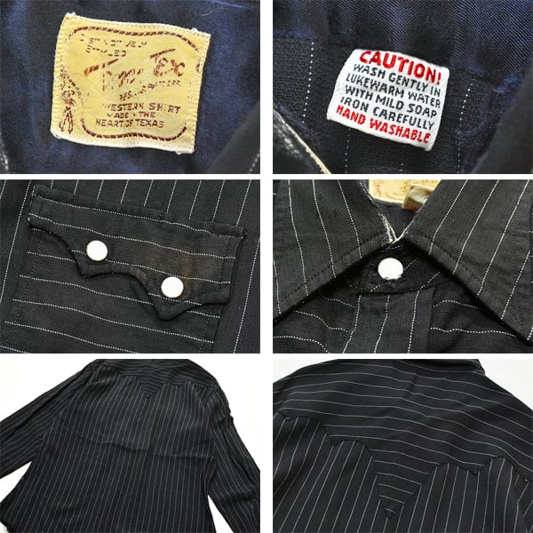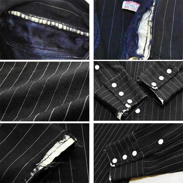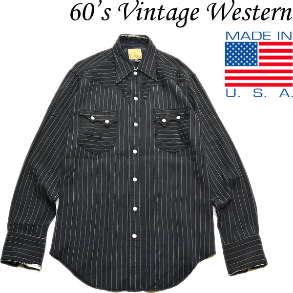 1点物◆ビンテージ60sレーヨンシャツ黒ストライプシャツ古着メンズMレディースOKアメカジ90sストリート/スポーツTem Texウェスタン372534