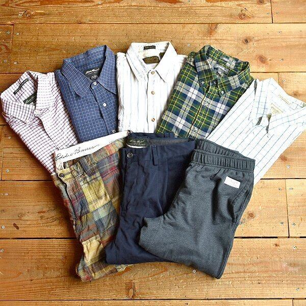 1点物◆エディーバウアー黒タグ白シャツ長袖ストライプシャツ古着メンズレディースOKアメカジブランド90sストリートスポーツブランド372539