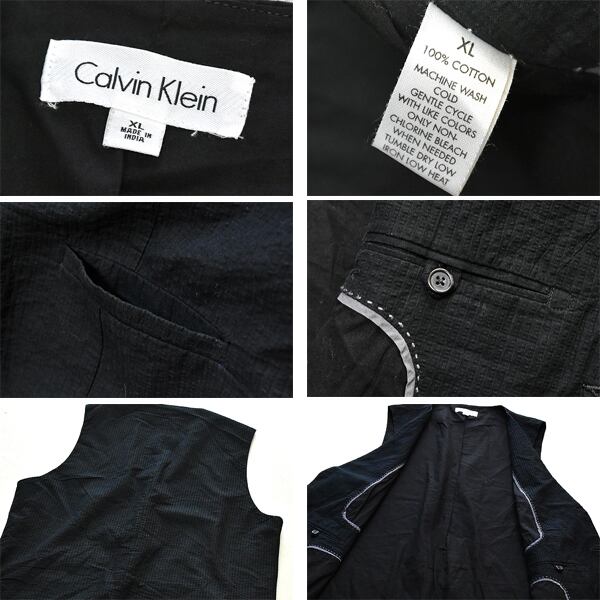 1点物◆カルバンクライン黒シアサッカースーツベストCKジレ古着メンズXLレディースOKアメカジ90sストリート/スポーツMixブランド中古372570