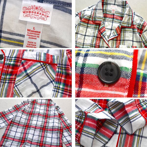 1点物◆USAブランド赤白チェックシャツ長袖パジャマシャツ古着レディースL/XLメンズOKアメカジ90sストリート/スポーツ中古レトロ緑372591