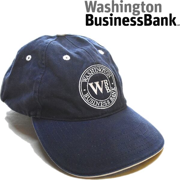 1点物◆WAビジネス銀行バンク紺ベースボールキャップ帽子古着メンズレディースOKアメカジブランド90sストリートMixスポーツ金ハット372611