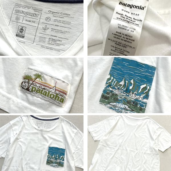 1点物◆パタゴニア白パタロハ柄ポケットTシャツ古着メンズMLレディースOKアウトドアブランド90sストリート/スポーツ白Tブランド中古372648
