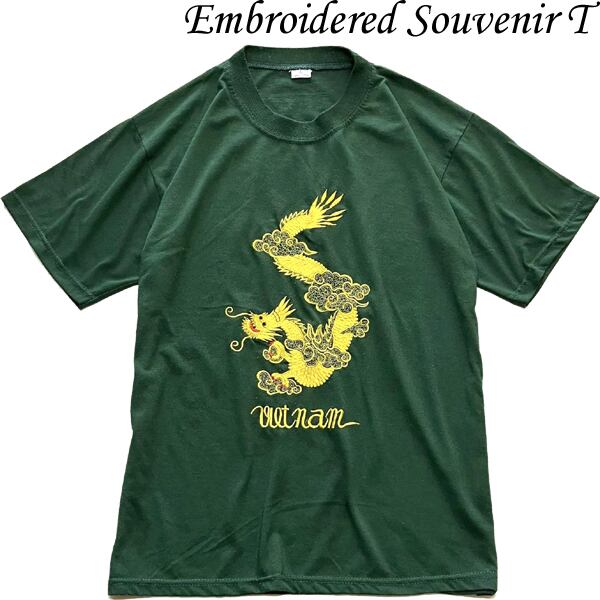 1点物◆ドラゴン龍ベトナムお土産スーベニア刺繍Tシャツ古着メンズLレディースOKアメカジブランド90sストリート/スポーツブランド緑372734