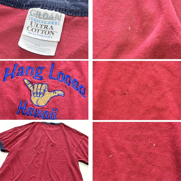 1点物◆ギルダン刺繍ハングルーズ紺リンガーTシャツ古着メンズ2XLレディースOKアメカジブランド90sストリートスポーツ中古ポロシャツ372727