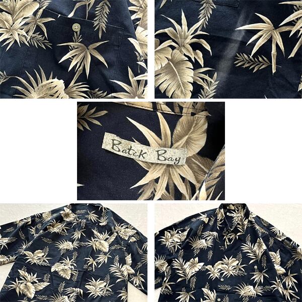 1点物◆Batik Bay柄シャツ黒アロハシャツ古着メンズXLレディースOKアメカジ90sストリート/スポーツMixハワイアン中古ブランドTシャツ372780