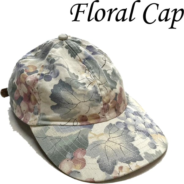 1点物◆ビンテージFLORAL花柄フローラルキャップ古着メンズレディースOKアメカジ90sストリートMixスポーツ中古USブランド80s革紐372822